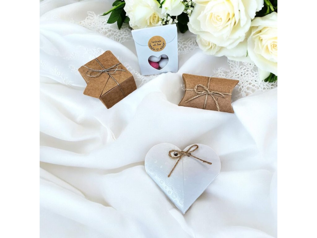 Svatební dárkové mandličky v hnědé krabičce s mašličkou - Mandle více druhů 30g